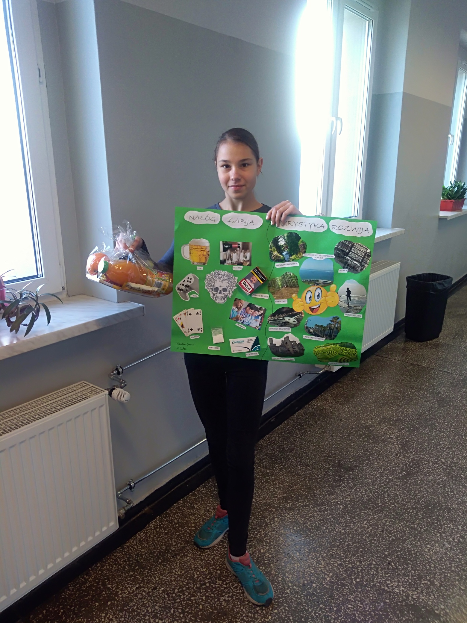 W związku z zakończeniem grantu „Nałogom NIE turystyka TAK. Warsztaty i wyjazdy profilaktyczno integracyjne 2019” dofinansowanego ze środków Urzędu Miasta Rybnika, zorganizowano konkurs plastyczny pod tym samym tytułem. Technika wykonania była dowolna. Plakaty nawiązywały do zaprzestania różnego rodzaju używek i promowały zdrowy styl życia aktywności sportowe i zwiedzanie świata. Nie było przegranych. Każdy uczestnik za swoją pracę został nagrodzony. Gratulujemy! Ta edycja grantu się kończy. Jeszcze teraz uczniowie wspominają wyjazdy do Łeby i Zakopanego. Mamy nadzieję, że to nie ostatnia i uśmiechamy się w stronę Urzędu Miasta