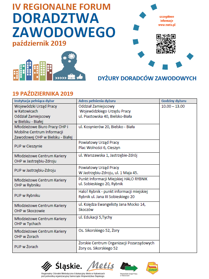 Zapraszamy do zapoznania się z dyżurami doradców zawodowych w ramach IV Regionalnego Forum Doradztwa Zawodowego.