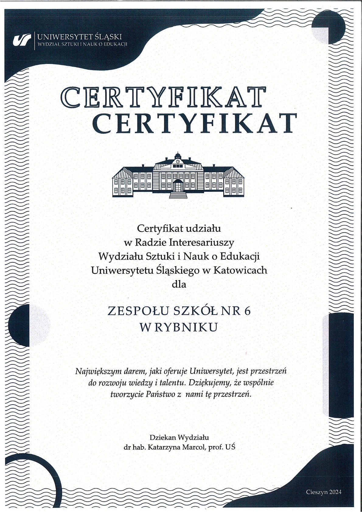 Zespół Szkół Nr 6 z Rybnika został zaproszony do udziału w Radzie Interesariuszy Wydział Sztuki i Nauk o Edukacji UŚ w Katowicach. Ta niecodzienna okazja stanowi wyraz uznania dla naszej placówki edukacyjnej, a jednocześnie potwierdzenie wysokiego standardu kształcenia, jakie oferujemy.